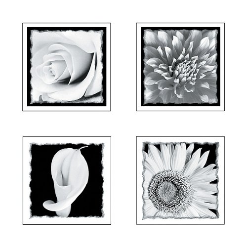 black and white wallpaper Self-Stick Black and White Flowers 4-pc. Wall Art Set