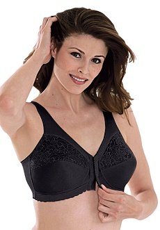 Front hook soft cup bra with attractive lace top cup offers perfect full-figure support. USA or imported.cushioned inner-bust band for lift, separation and comfortadjustable front hooks for easy wearextra-wide adjustable cushioned straps sit softly on shoulderspolyester, nylon/polyamide, foam rubber crisscross inside, Lycra spandexextended sizes availableBras, plus size bras in sizes 38-58 B,C,D,DD,F,G,H,IFor a perfect fit, Watch the bra video!